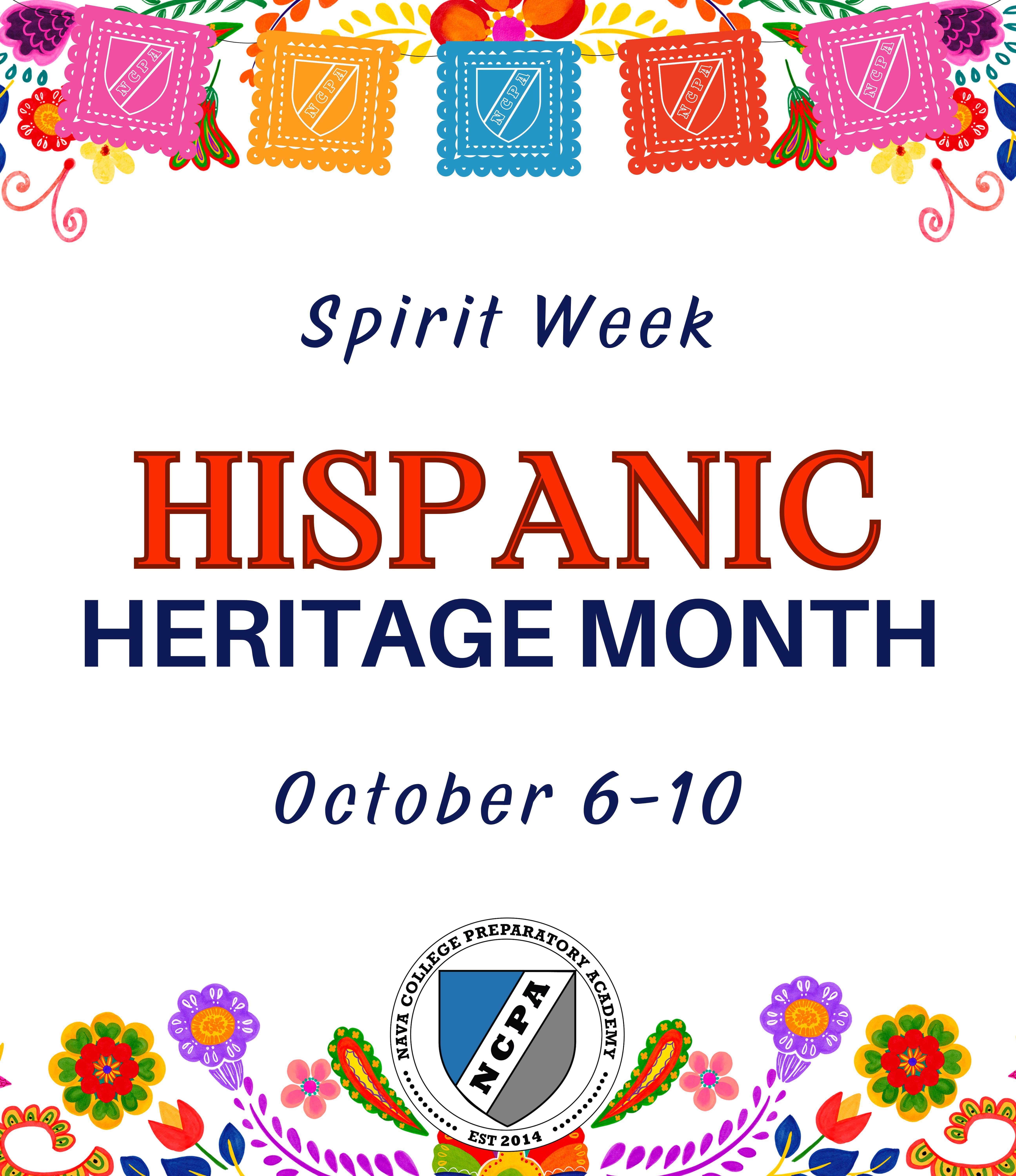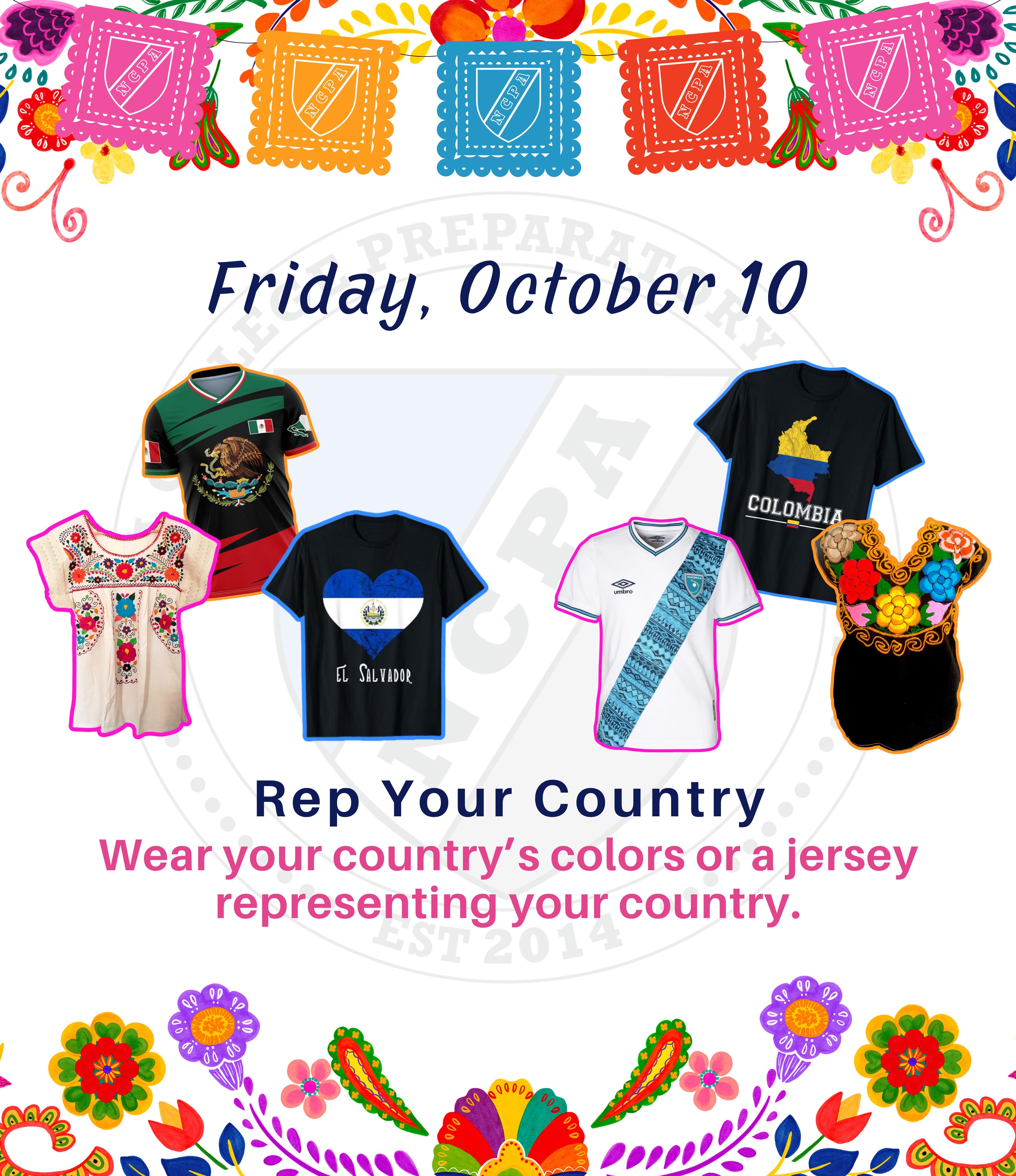 Celebrate Hispanic heritage during spirit week from October 6-10. Participation is optional. Students who choose not to participate must wear their school uniform.