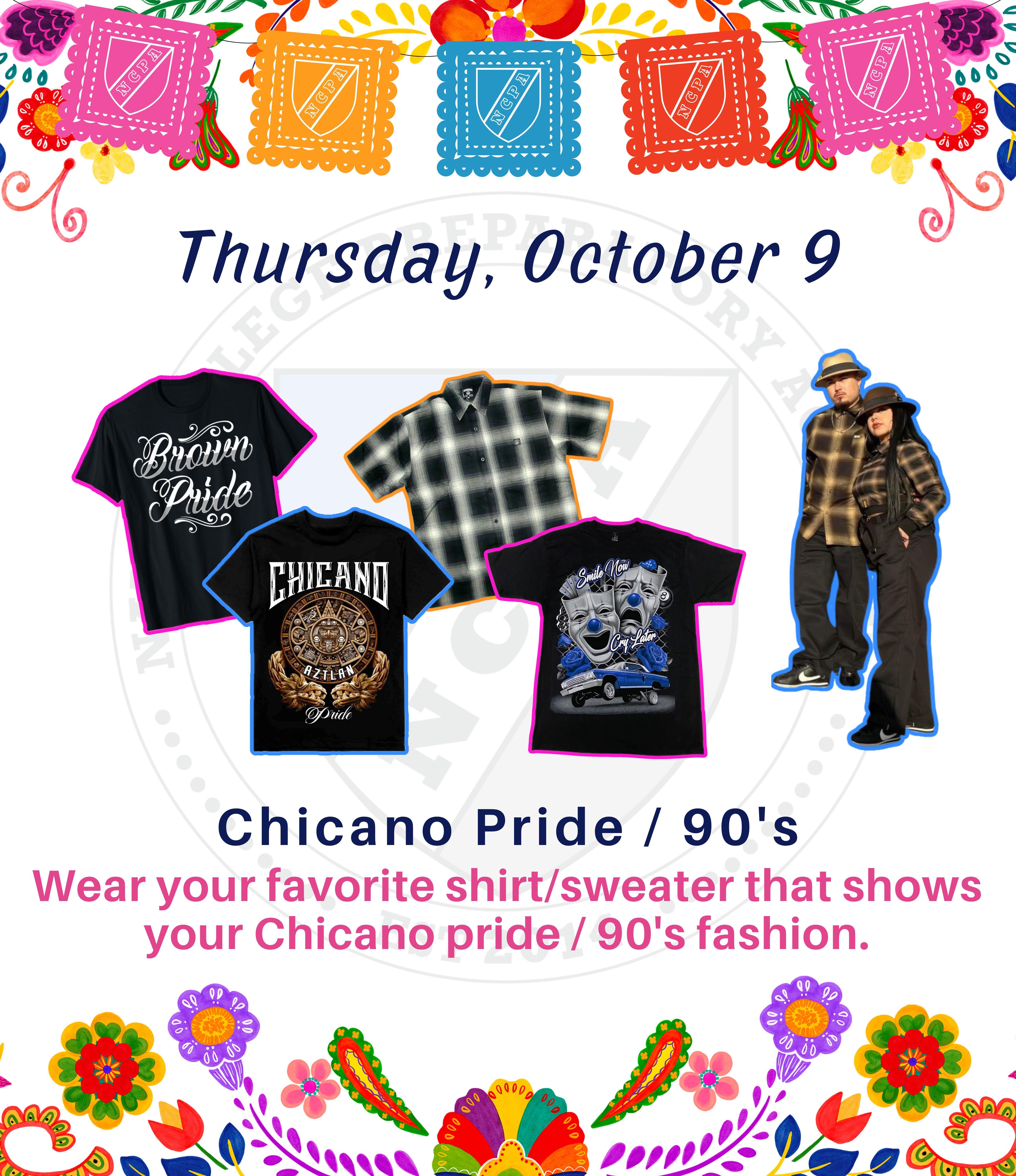 - Day #4: Thursday, 10/09 - Chicano Pride / 90's: Wear your favorite shirt/sweater that shows your Chicano pride / 90's fashion.